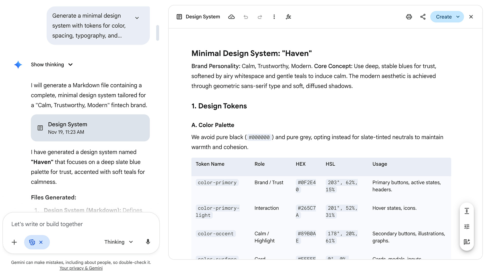 Puedes crear la base de un sistema de diseño futuro pidiendo a Gemini que te ayude con elementos del sistema de diseño. Puedes usar Gemini para: