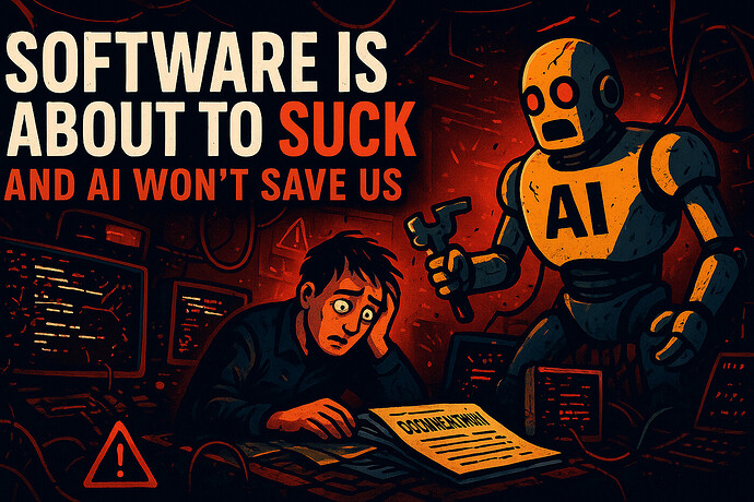 Porque mientras el mundo está ocupado adorando a la IA como el dios codificador omnisciente que supuestamente llegará “el próximo trimestre”, las empresas están silenciosamente matando el ecosistema que mantiene el software bueno: desarrolladores reales, mentoría real y tiempo real invertido en personas que crecen.